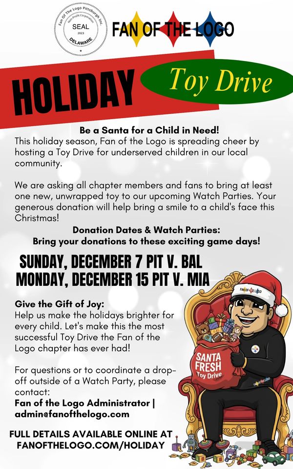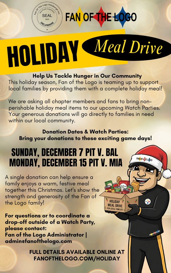 This holiday season, our Pittsburgh, Atlanta, and Arizona chapters will collect food and toys during our Steelers Watch Parties & Tailgates to support children, families, and individuals in need.
